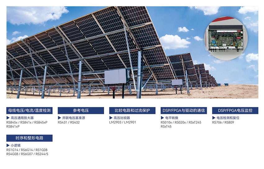 江蘇潤石的低失調電壓運算放大器、高壓通用運放、高壓比較器、電平轉換、模擬開關(guan) 、電壓基準源、小邏輯、複位等係列芯片在新能源光伏領域、儲(chu) 能領域、戶外電源領域得到廣泛應用。