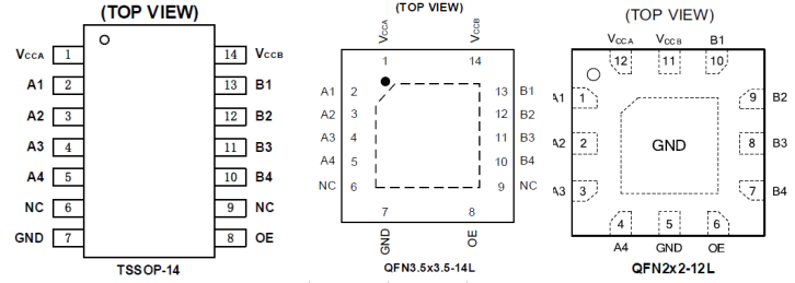 · A側(ce) 支持1.65V~5.5V,B側(ce) 支持2.3V~5.5V