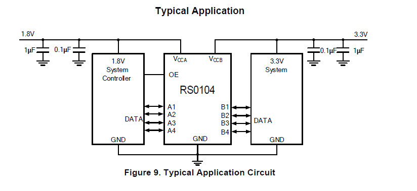需要注意VCCA的供電電壓不能大於(yu) VCCB,即A側(ce) 接到低電壓係統,B側(ce) 接到高電壓係統。