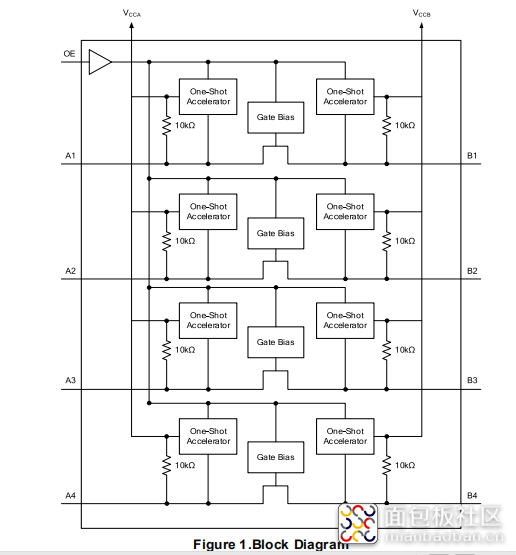 需要注意VCCA的供電電壓不能大於(yu) VCCB,即A側(ce) 接到低電壓係統,B側(ce) 接到高電壓係統。