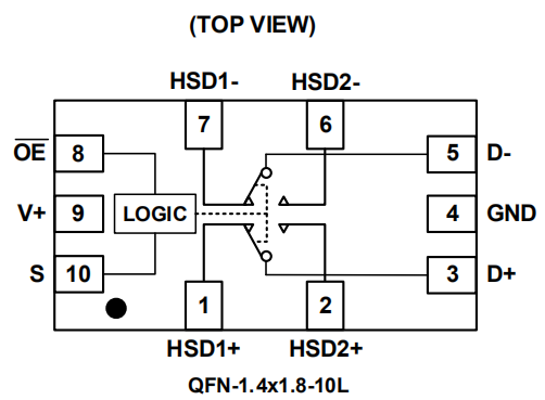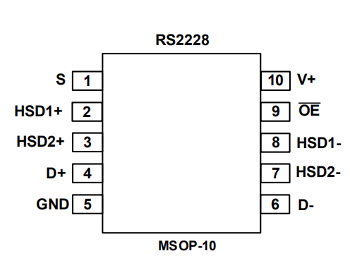 多路複用器/多路解複用器開關(guan) RS2228采用QFN-1.4x1.8-10L和MSOP-10封裝。它的工作環境溫度範圍為(wei) -40°C至+85°C